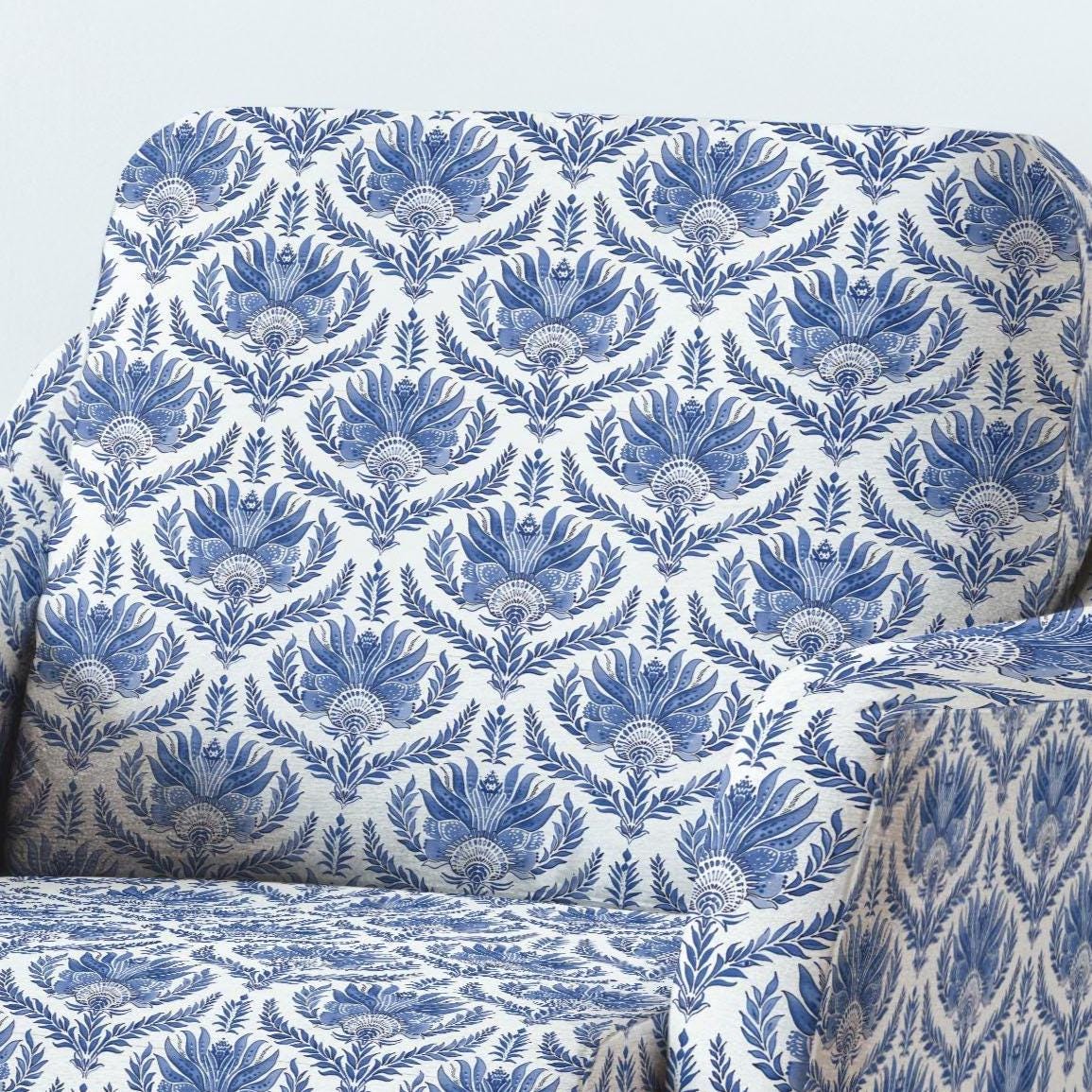 100% LINEN Fabric UPHOLSTERY 12oz - French blue block print on white linen - toile de jouy fabric - floral upholstery heavy 305