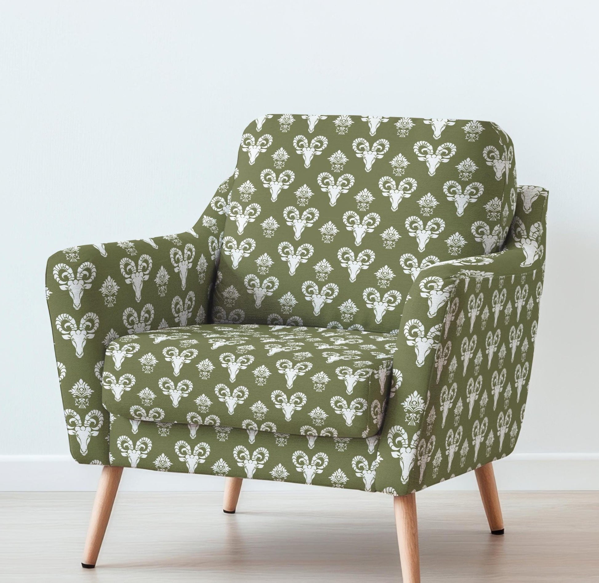 100% LINEN Fabric UPHOLSTERY 12oz - Grandmillenniar Animal print on linen - Modern vintage Victorain Sheep Aries upholstery 2153
