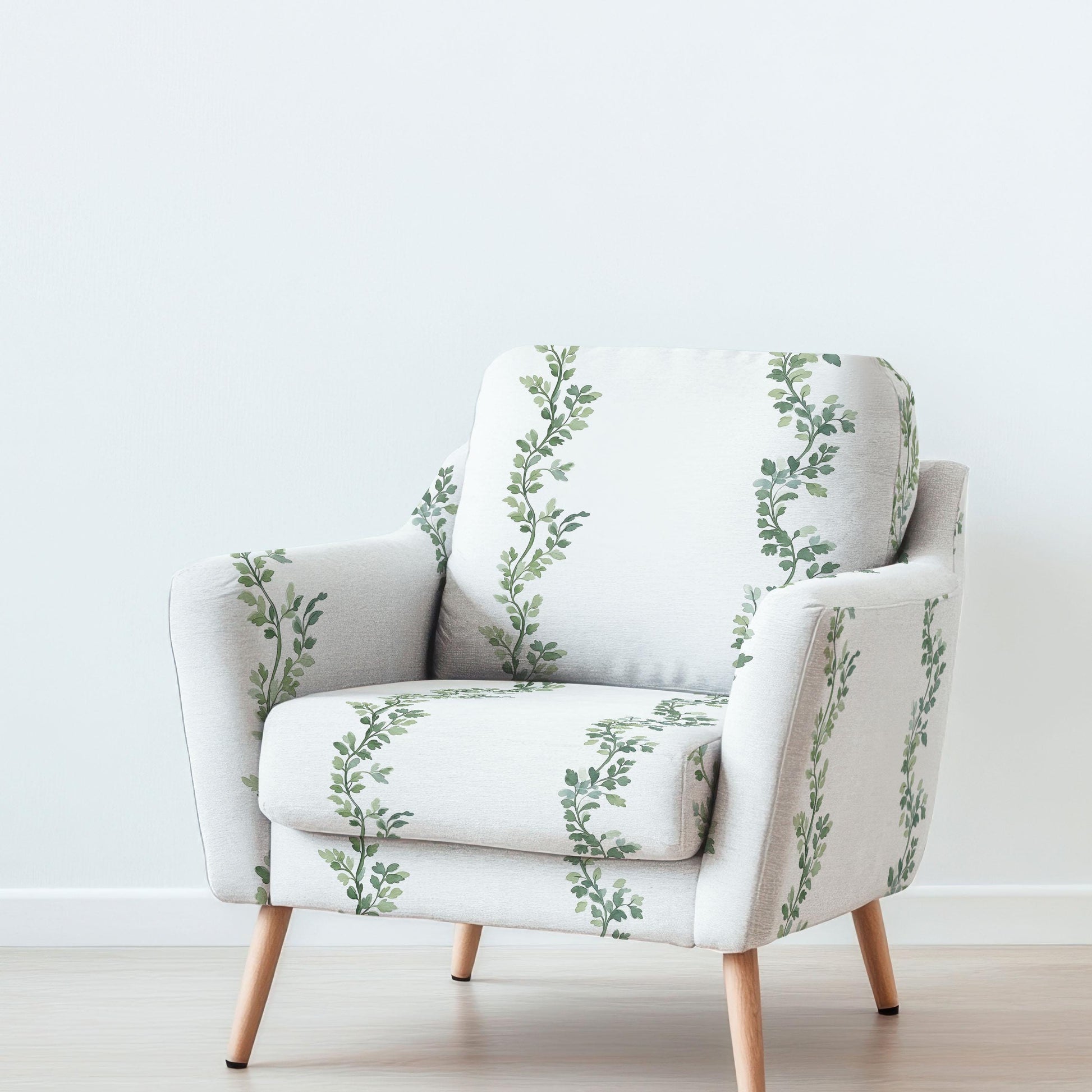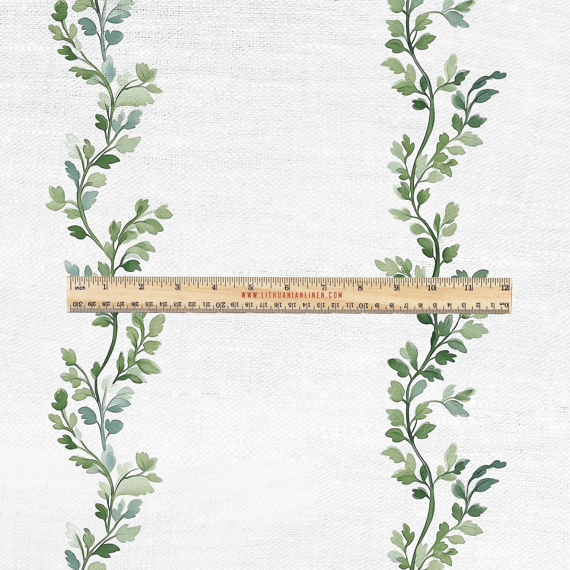 100% LINEN Fabric UPHOLSTERY 12oz - leaves wave stripe print on linen 2709
