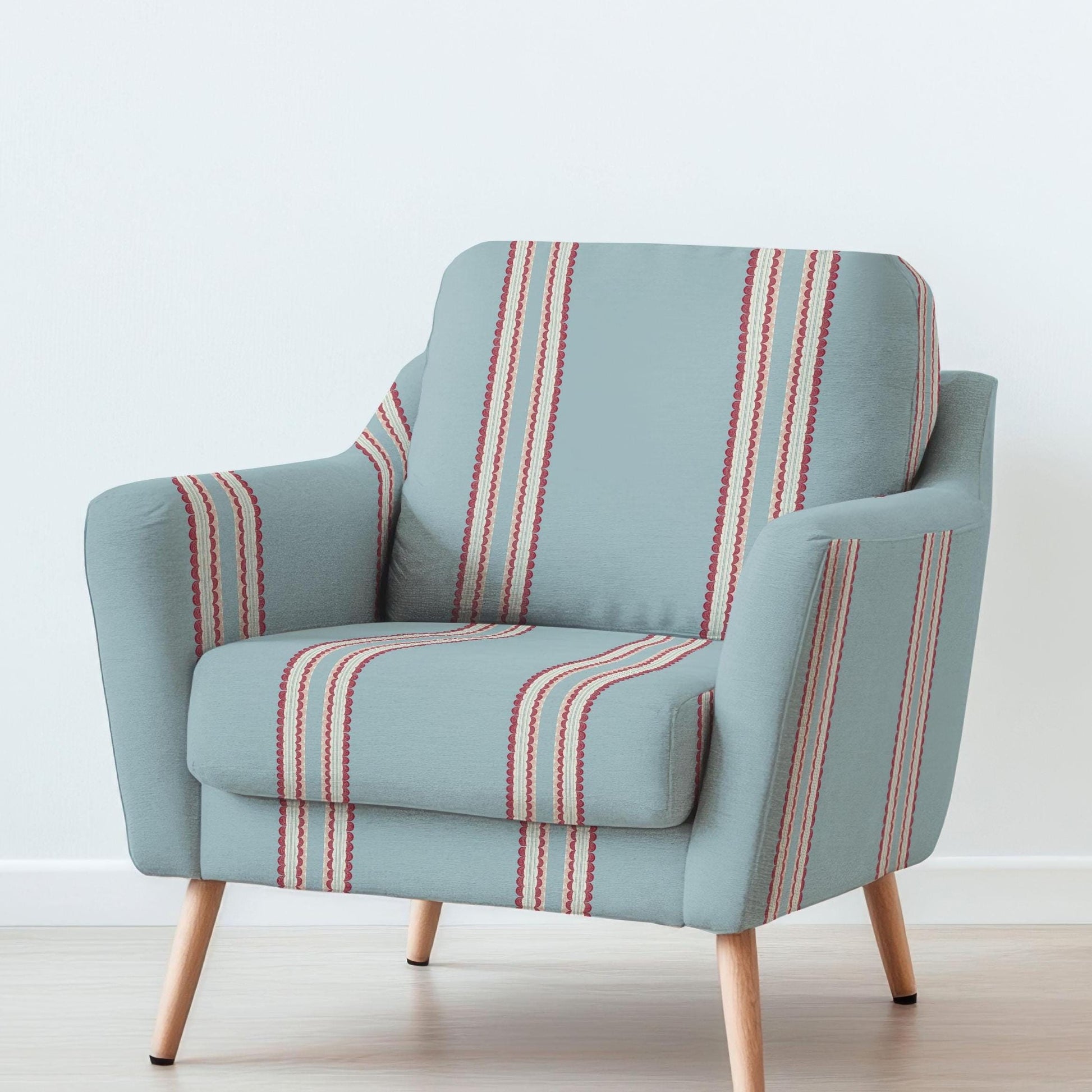 100% LINEN Fabric UPHOLSTERY 12oz - Retro scalloped stripe print on linen 2837