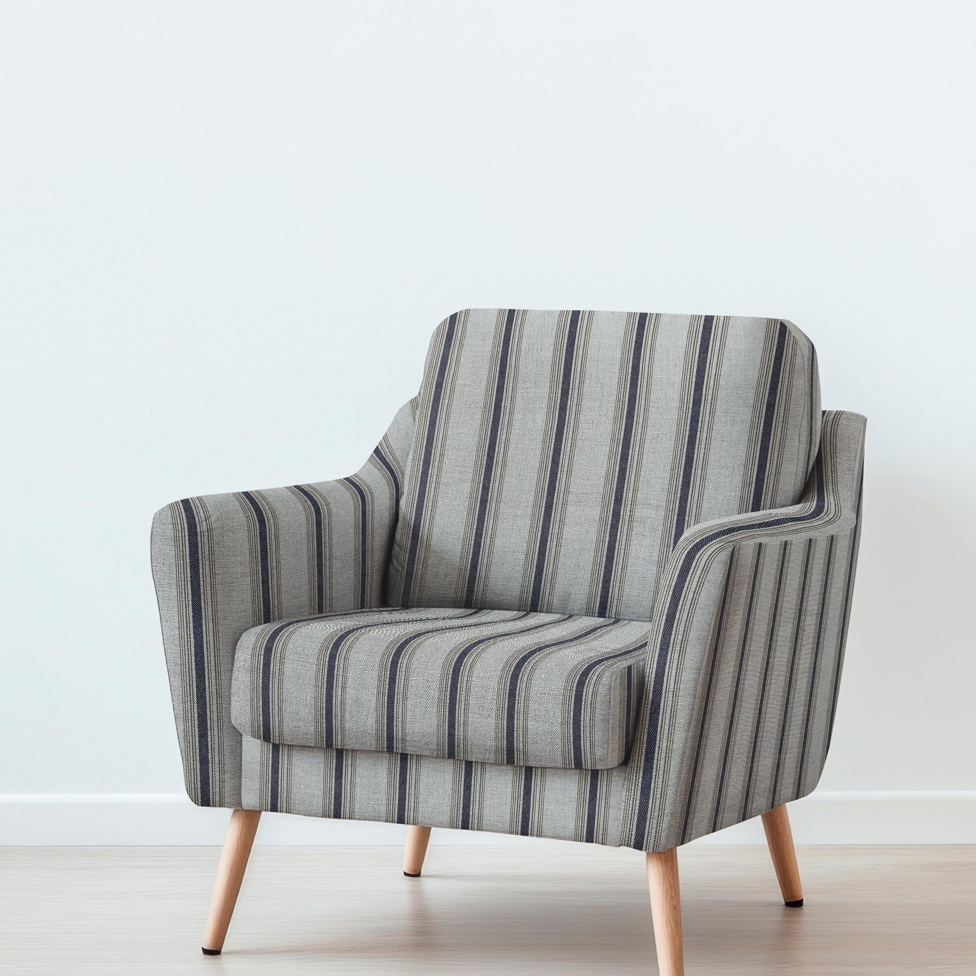 100% LINEN Fabric UPHOLSTERY 12oz - Sack stripe Belgian print on linen - Modern vintage pattern brown navy 2969