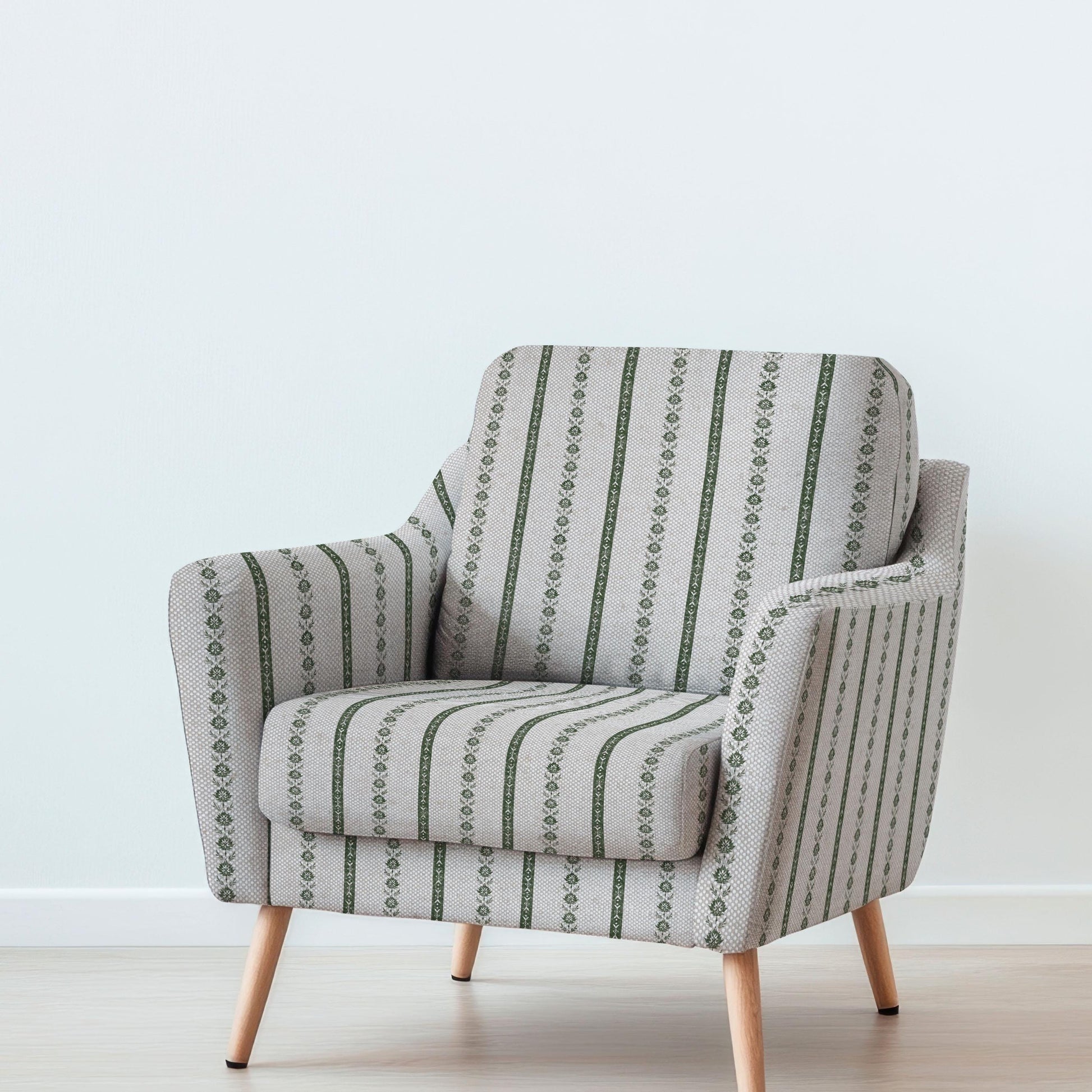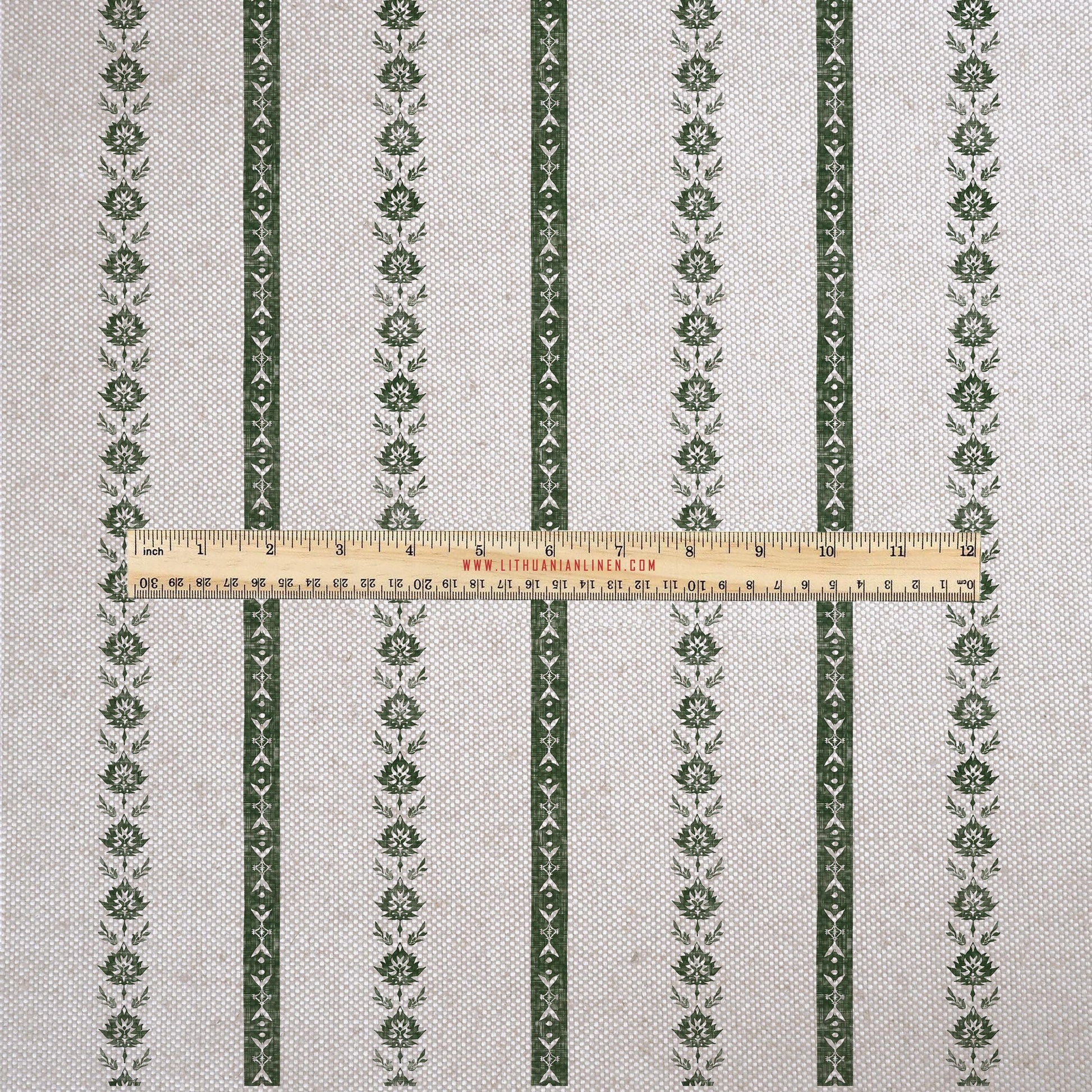 100% LINEN Fabric UPHOLSTERY 12oz - stripe block print - oatmeal linen fabric with green floral print - Modern Vintage upholstery 2687