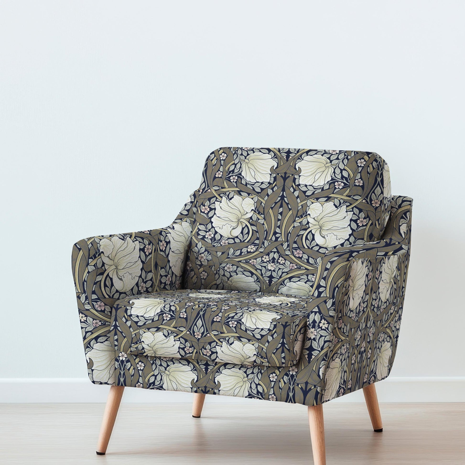100% LINEN Fabric UPHOLSTERY 12oz - William Morris Pimpernel khaki green print on linen - Victorian art craft - floral upholstery 201K