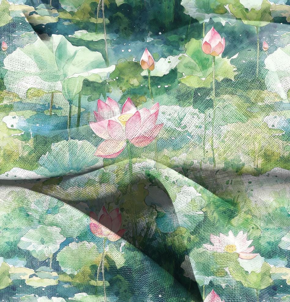 100% LINEN Fabric Waterlilly , linen fabric inspired by Monet Paintings Water Lilies , heavy linen fabric for upholstery home decor
