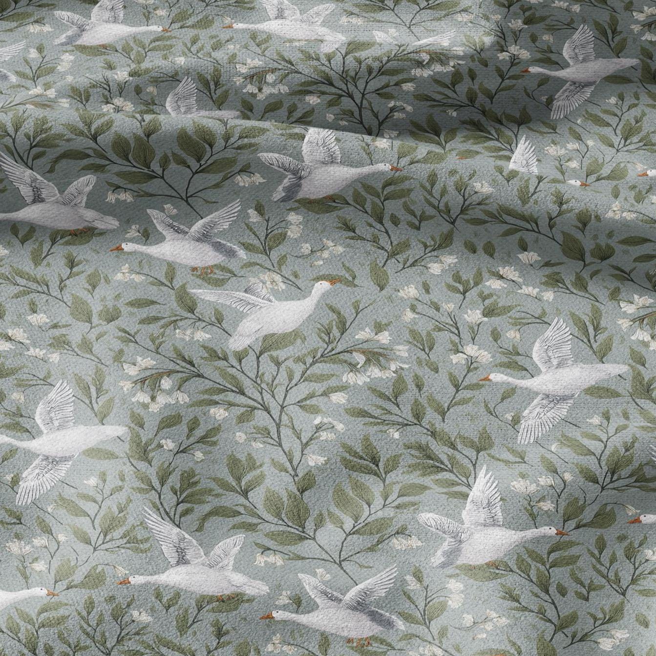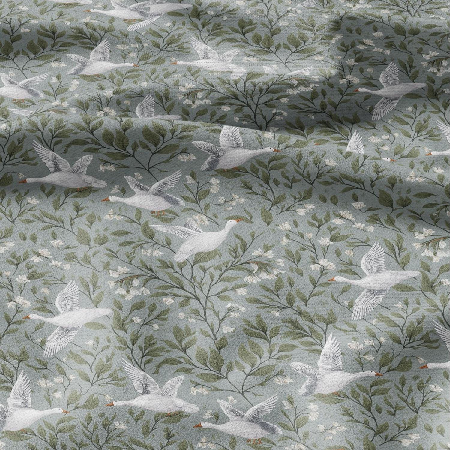 100% LINEN Fabric white goose print - animal linen fabric with bird print for upholstery home decor curtains pillowcases dress making 2973