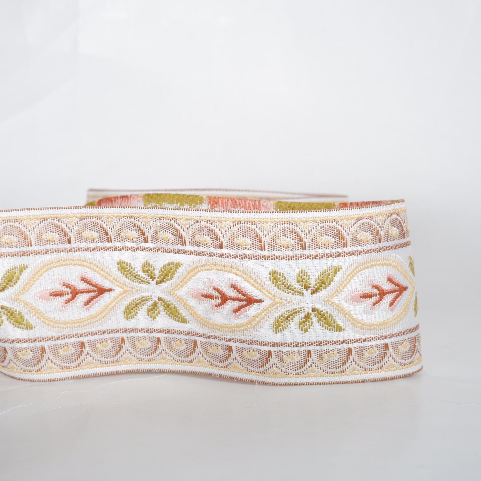Jacquard woven fabric trim - Ribbon width 60 mm or 2.3" - Pale pink Decorative webbing Tape Trim