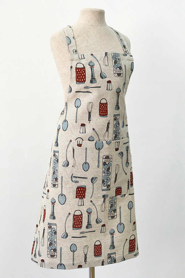 Linen fabric Coffee print Heavy weight 240gsm Kitchen tool print on flax cotton fabric for tablecloth, aprons, home textile