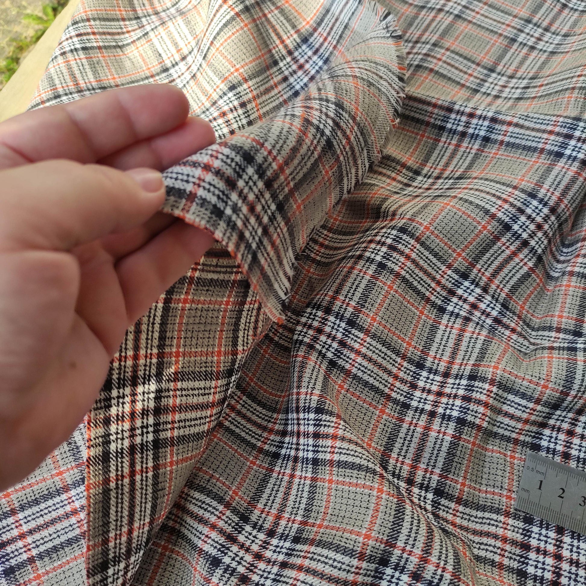 Premium Linen checked Fabric in black natural brown linen | malmo check Medium weight natural black brown