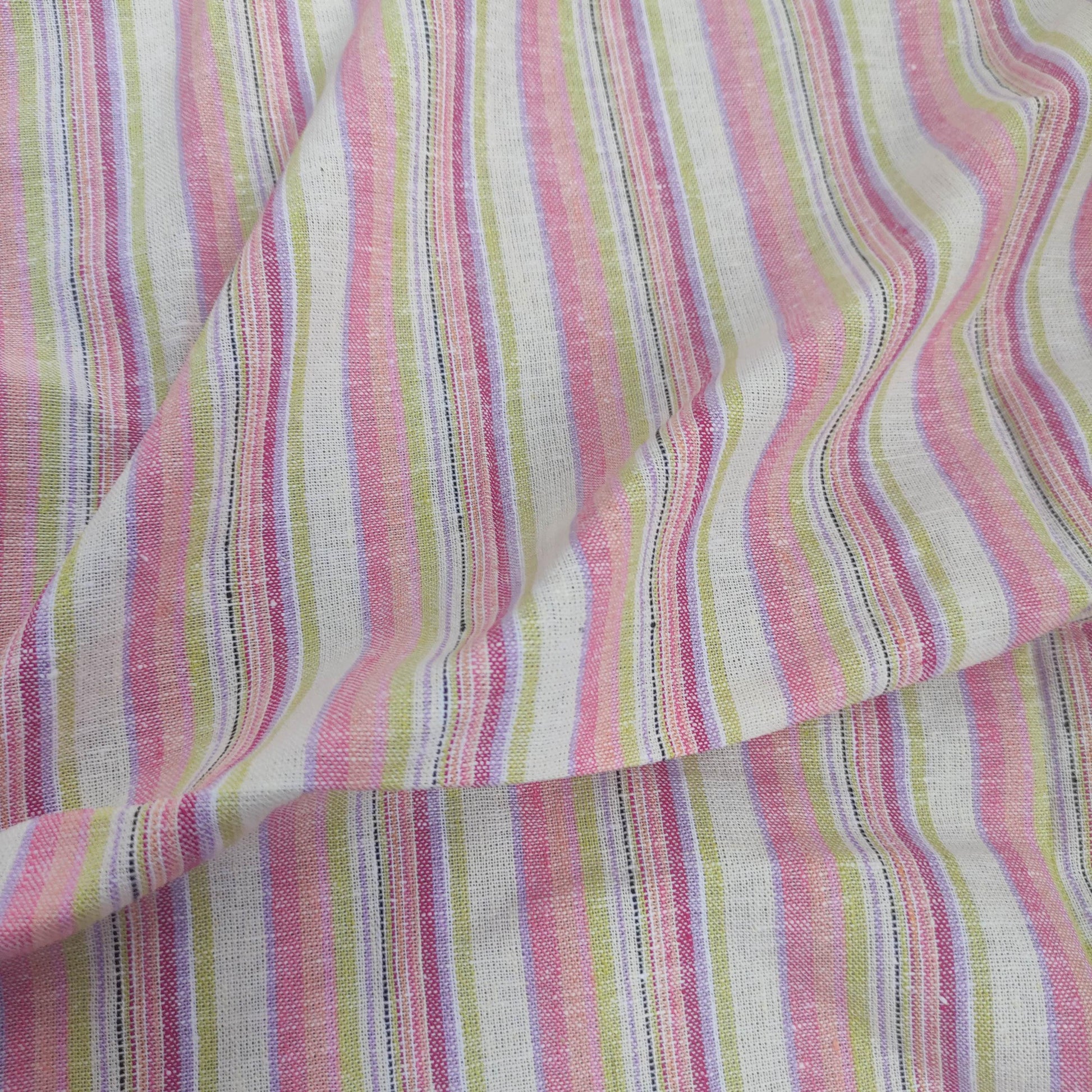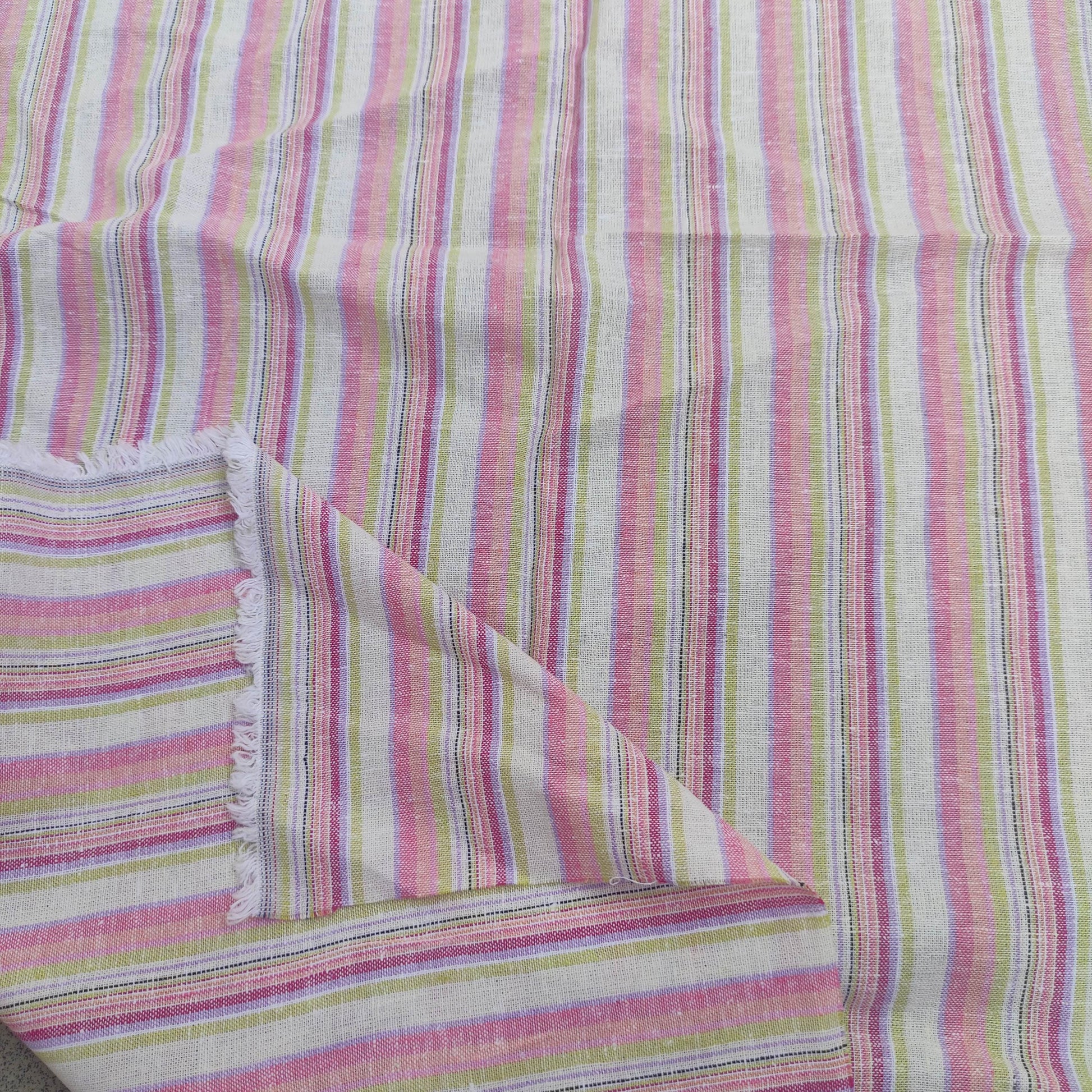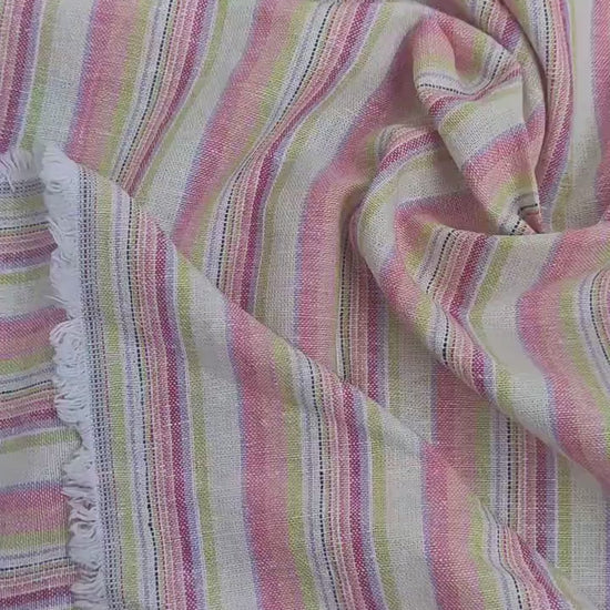 Premium Linen Fabric Santorini striped pink | Midweight multicolor stripes | fabric for home textile curtains tablecloth T132