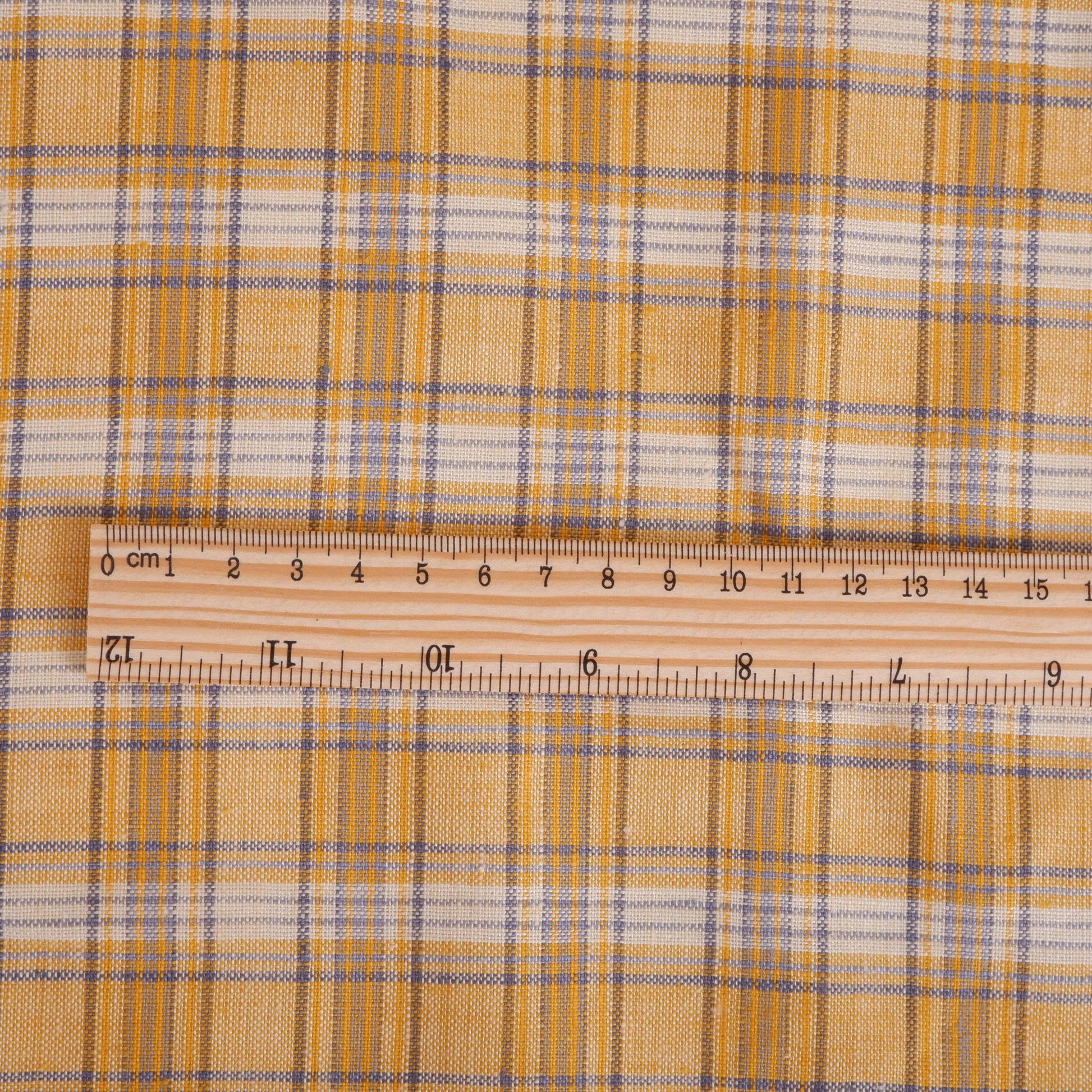 Premium Linen Gingham Fabric in Mustard | Medium weight multicolor check in mustard yellow and brown