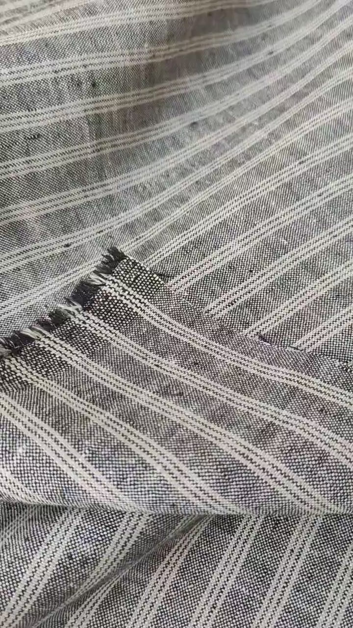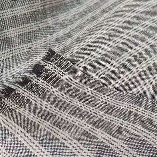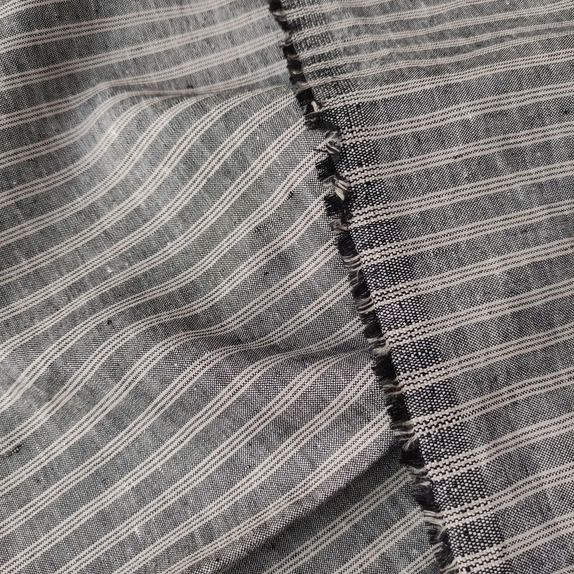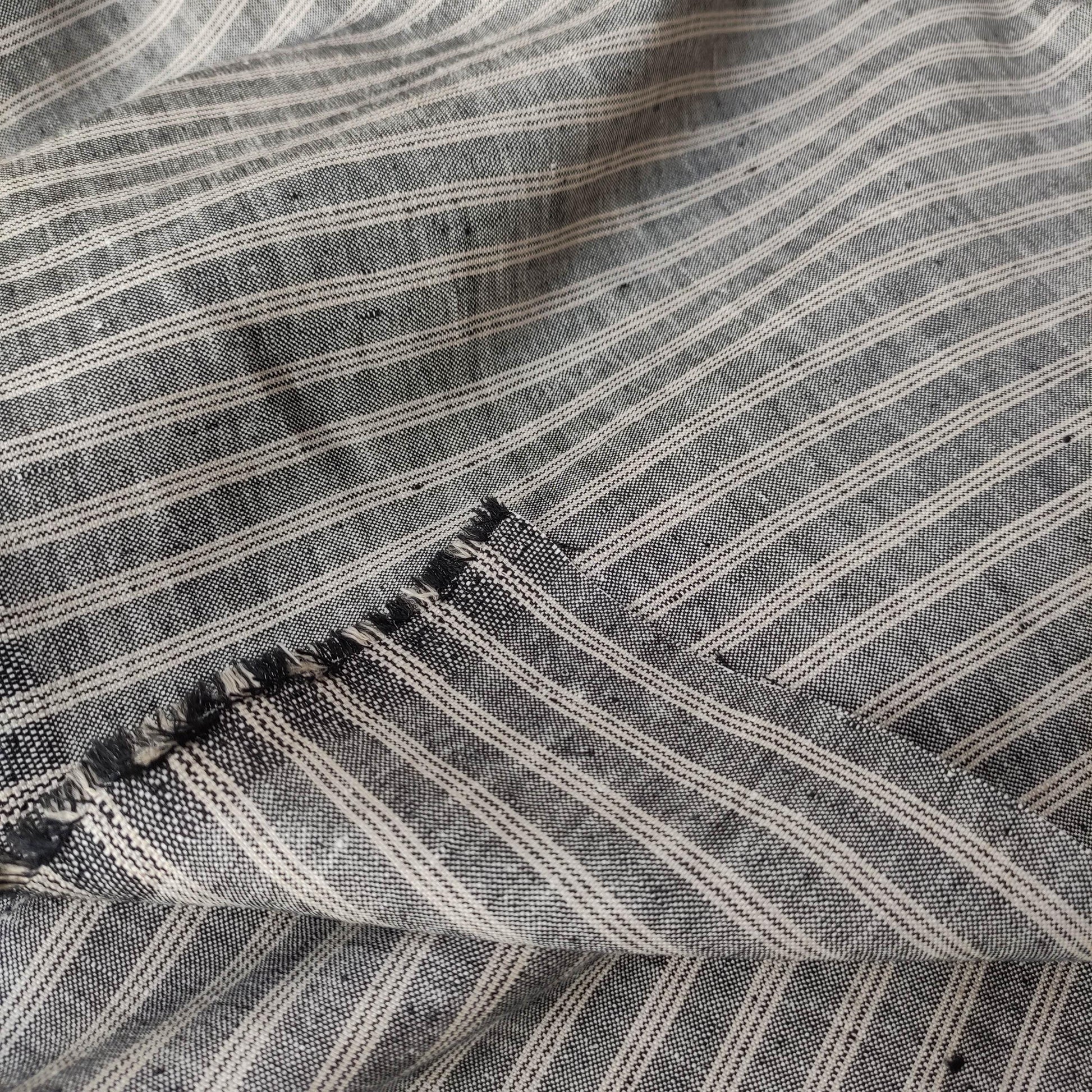 This is a linen stripe fabric in a black natural colorway. Beautiful, premium quality linen that would make beautiful garments or home decor items.