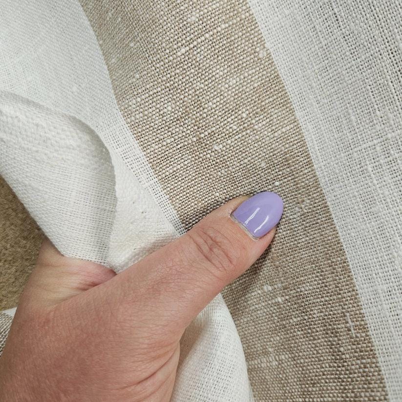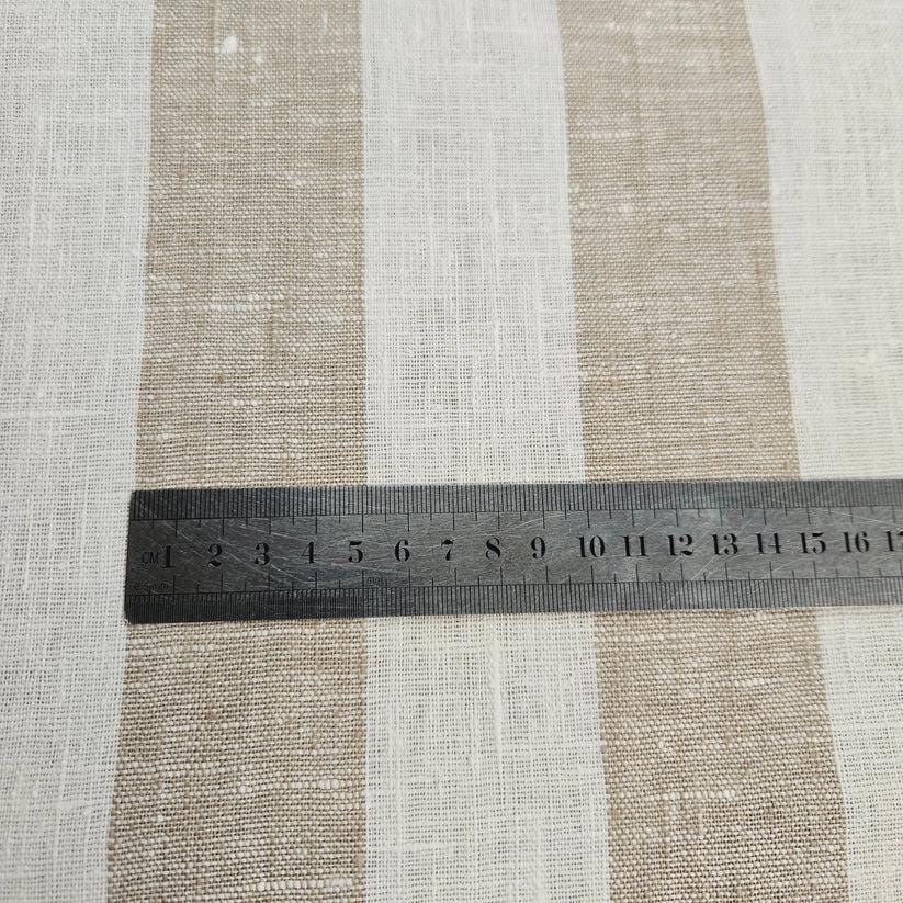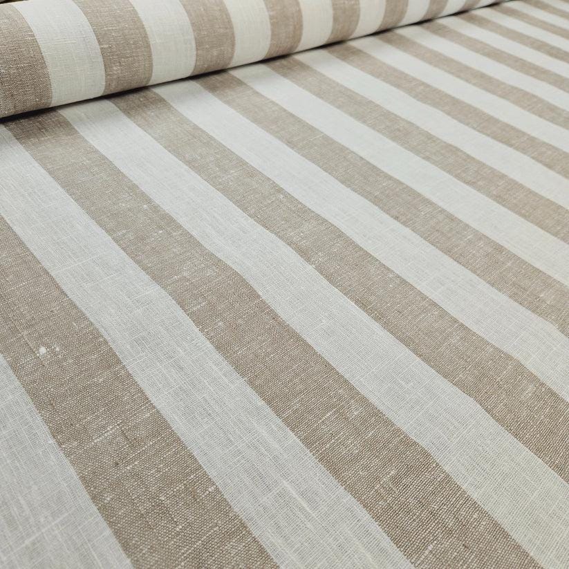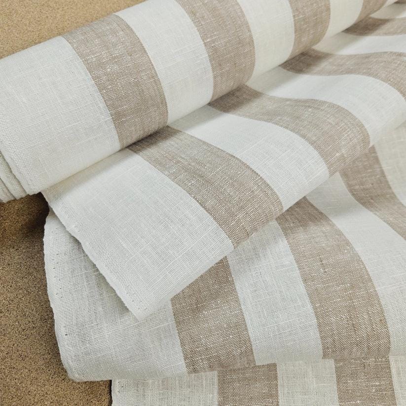 This is a linen stripe fabric in a classic colorway in natural (or taned) and white. Beautiful, premium quality linen that would make beautiful garments or home decor items.