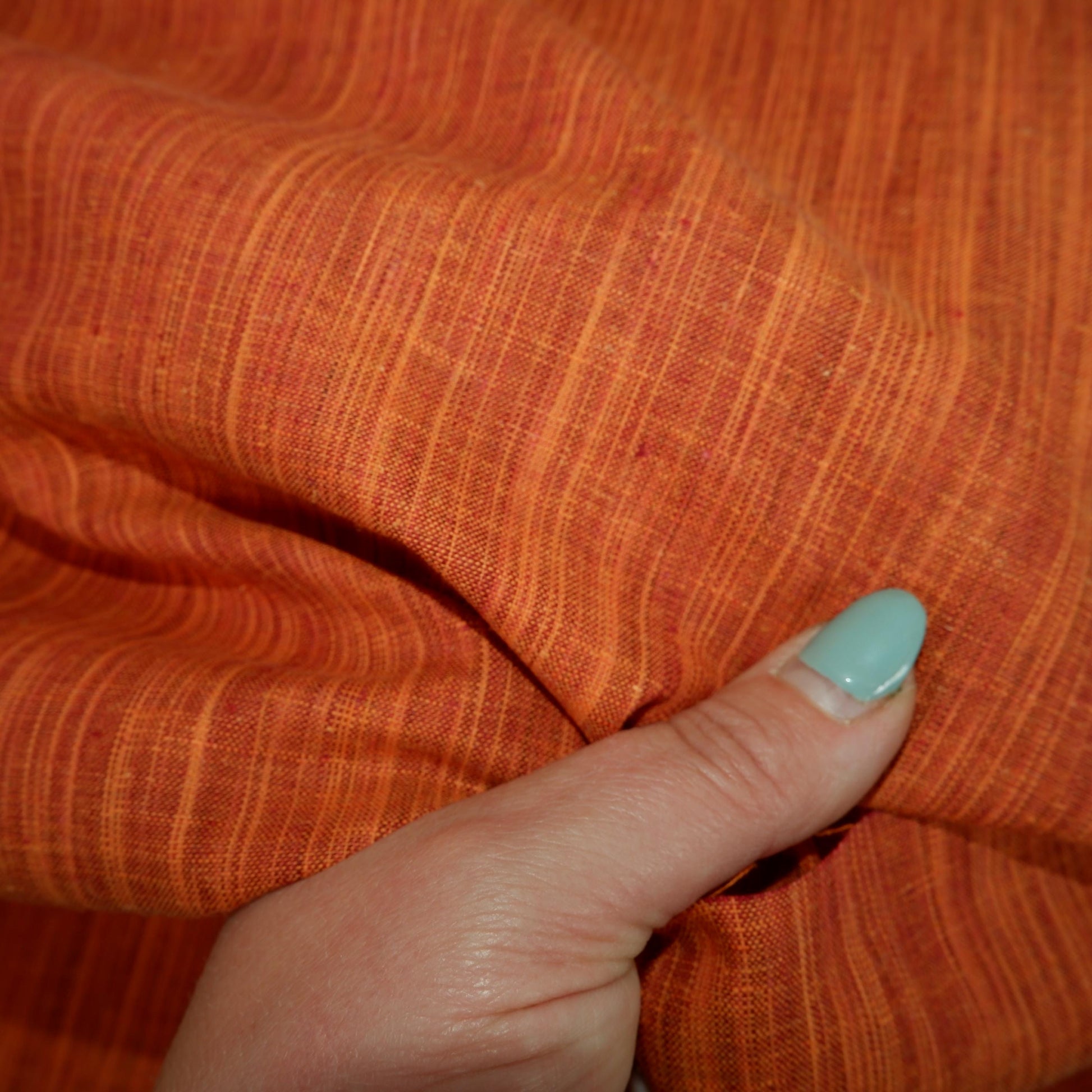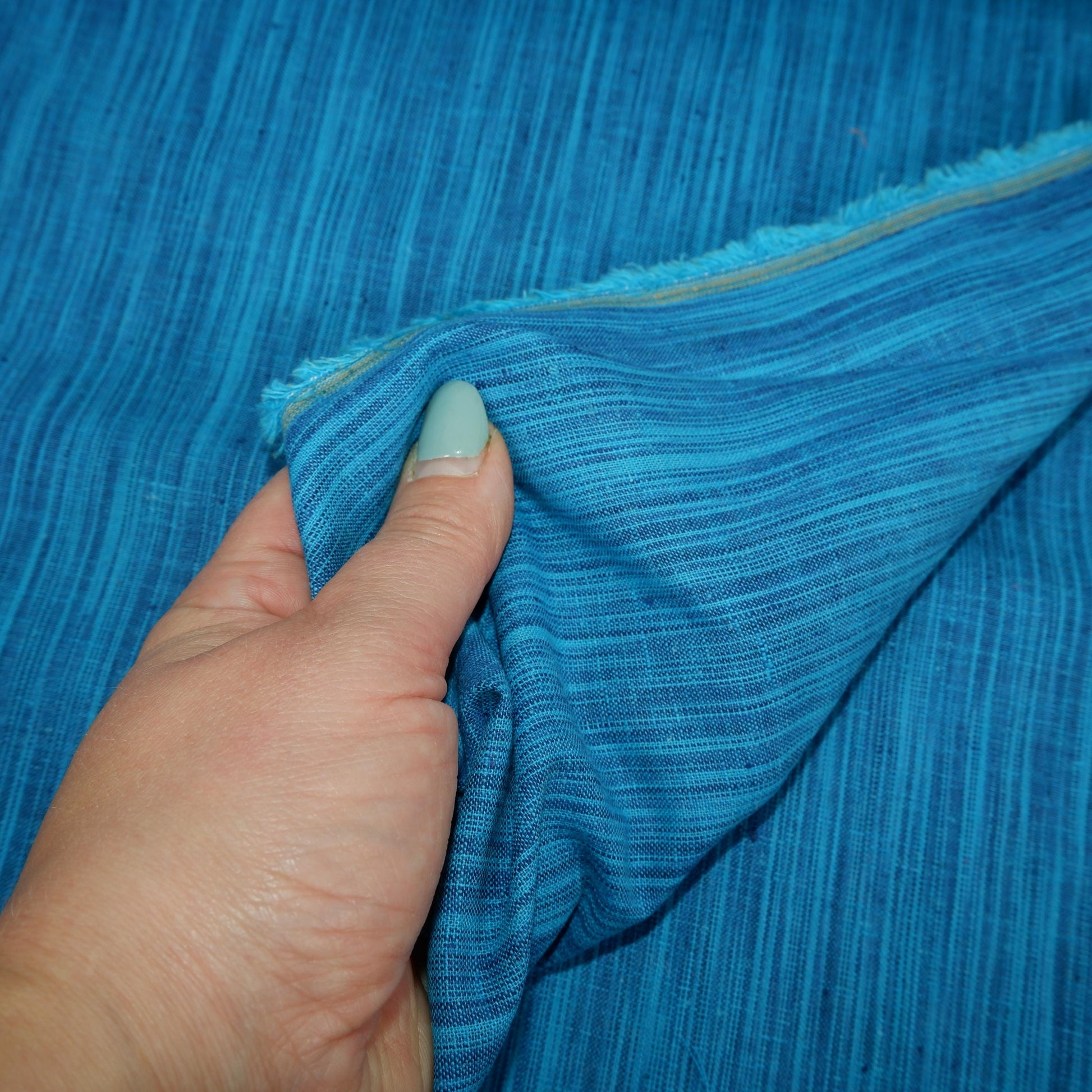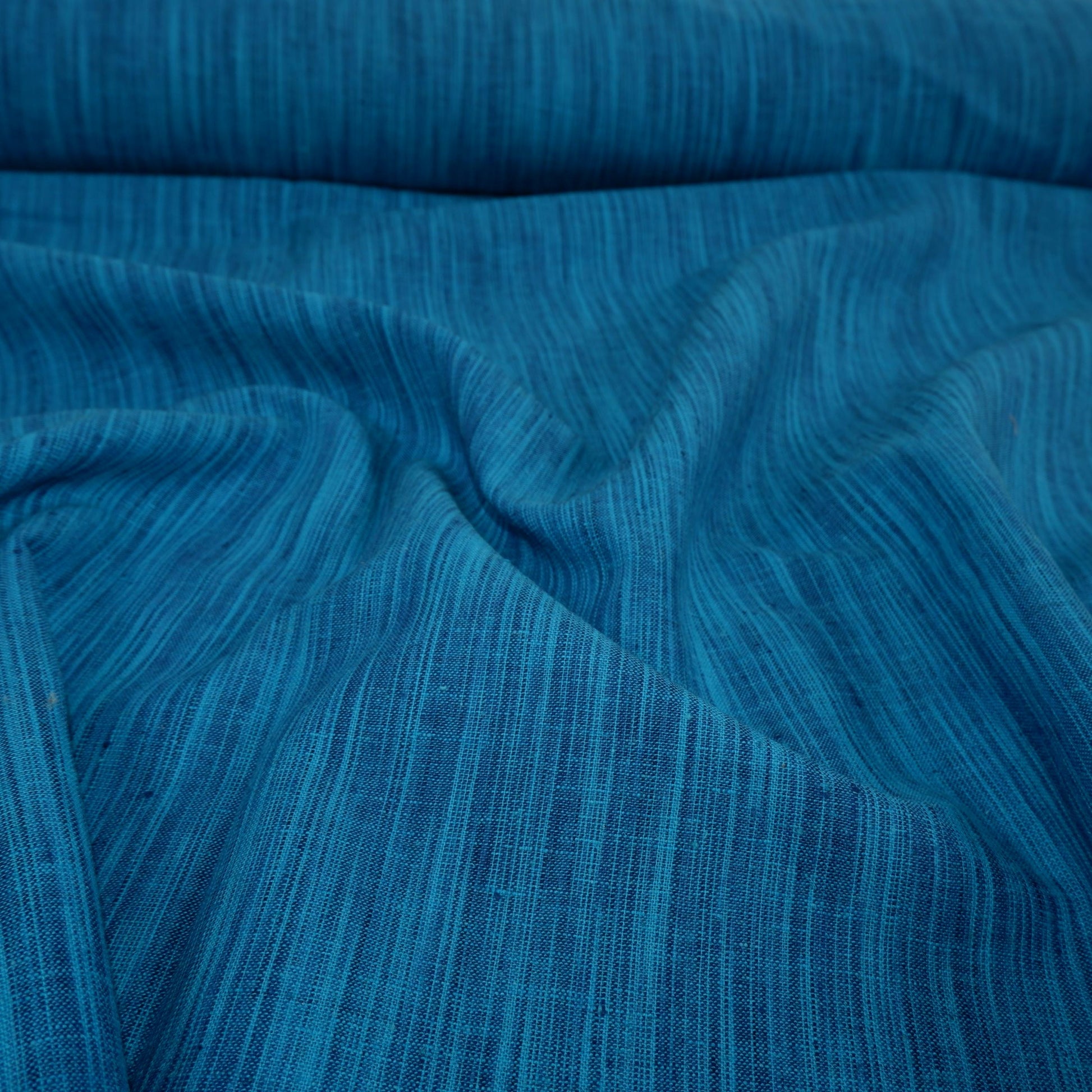 This linen fabric is grown, dyed, and woven entirely in Europe, where there is a strong heritage of spinning and weaving linen fabric. It is yarn dyed, meaning the yarns are dyed before being woven