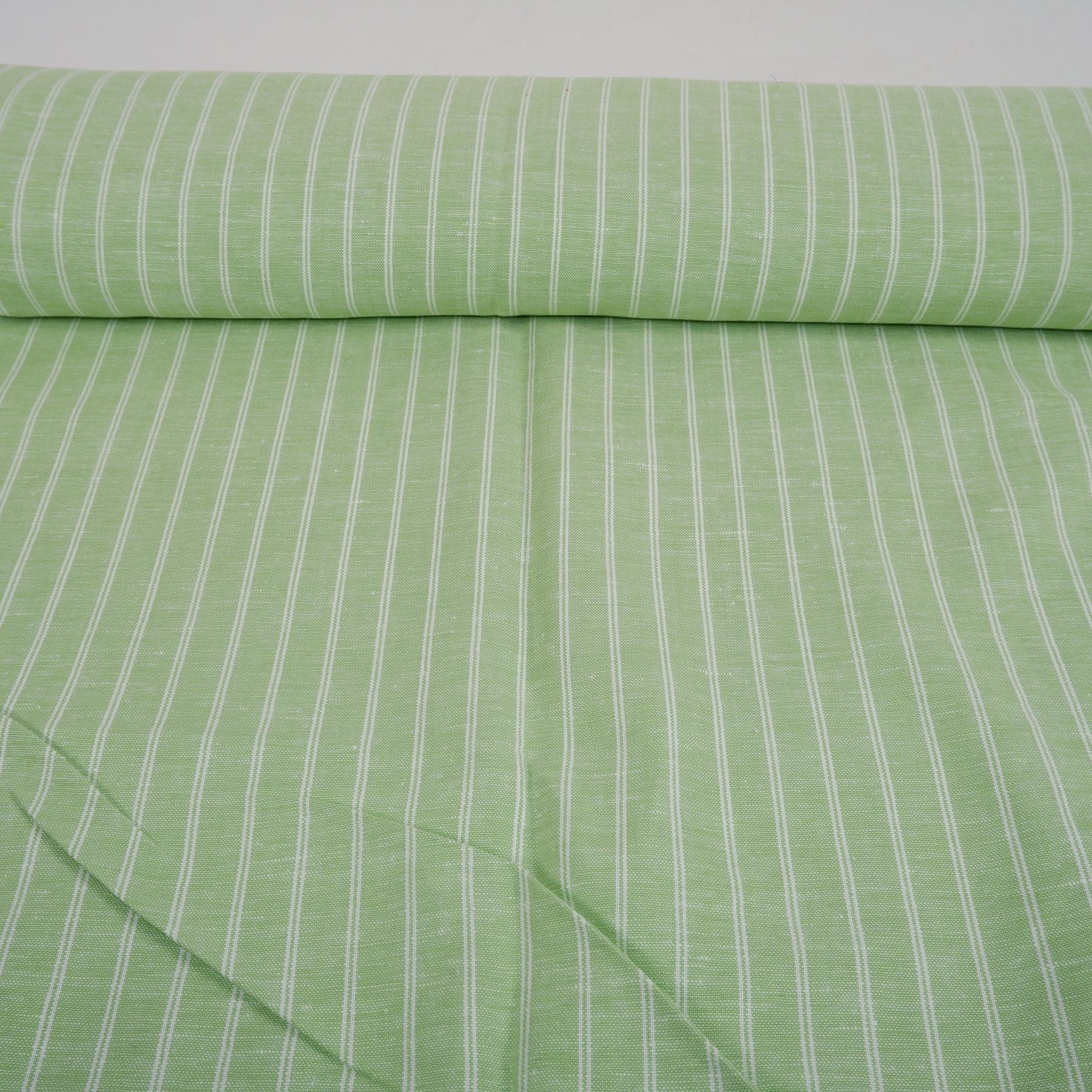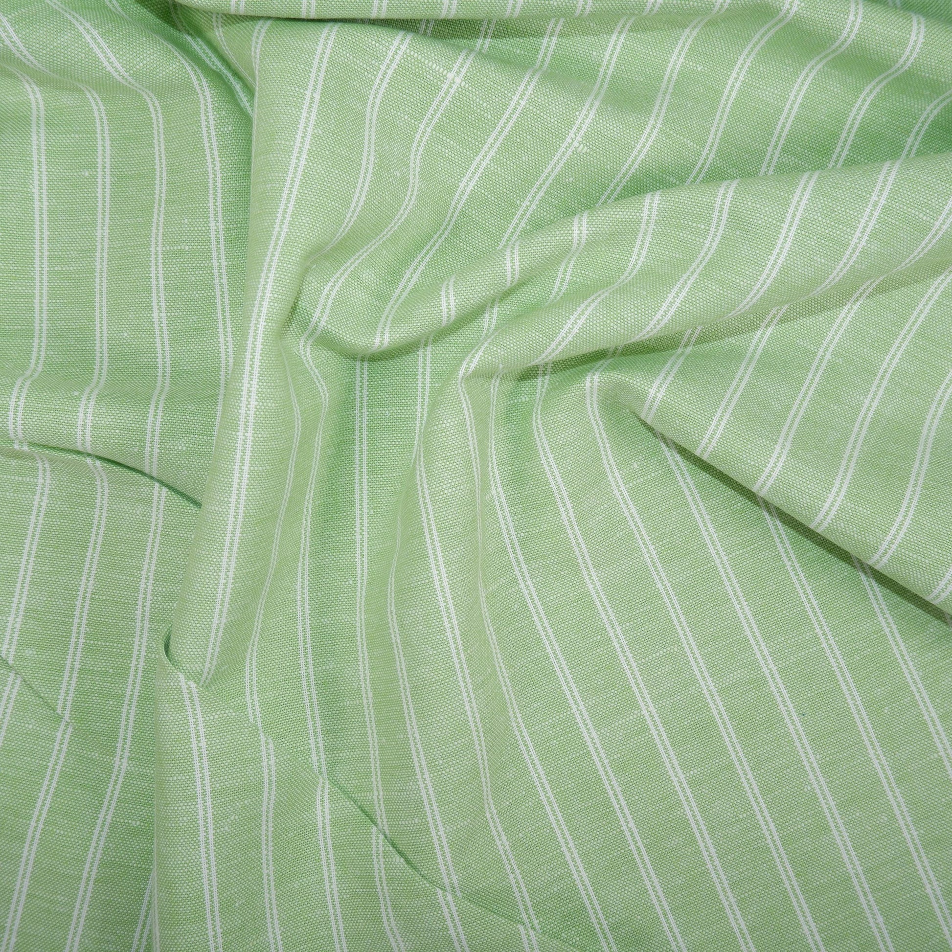 Premium Linen striped Fabric in pale green | Medium weight multicolor stripes Padua pinstripe for clothing home textile