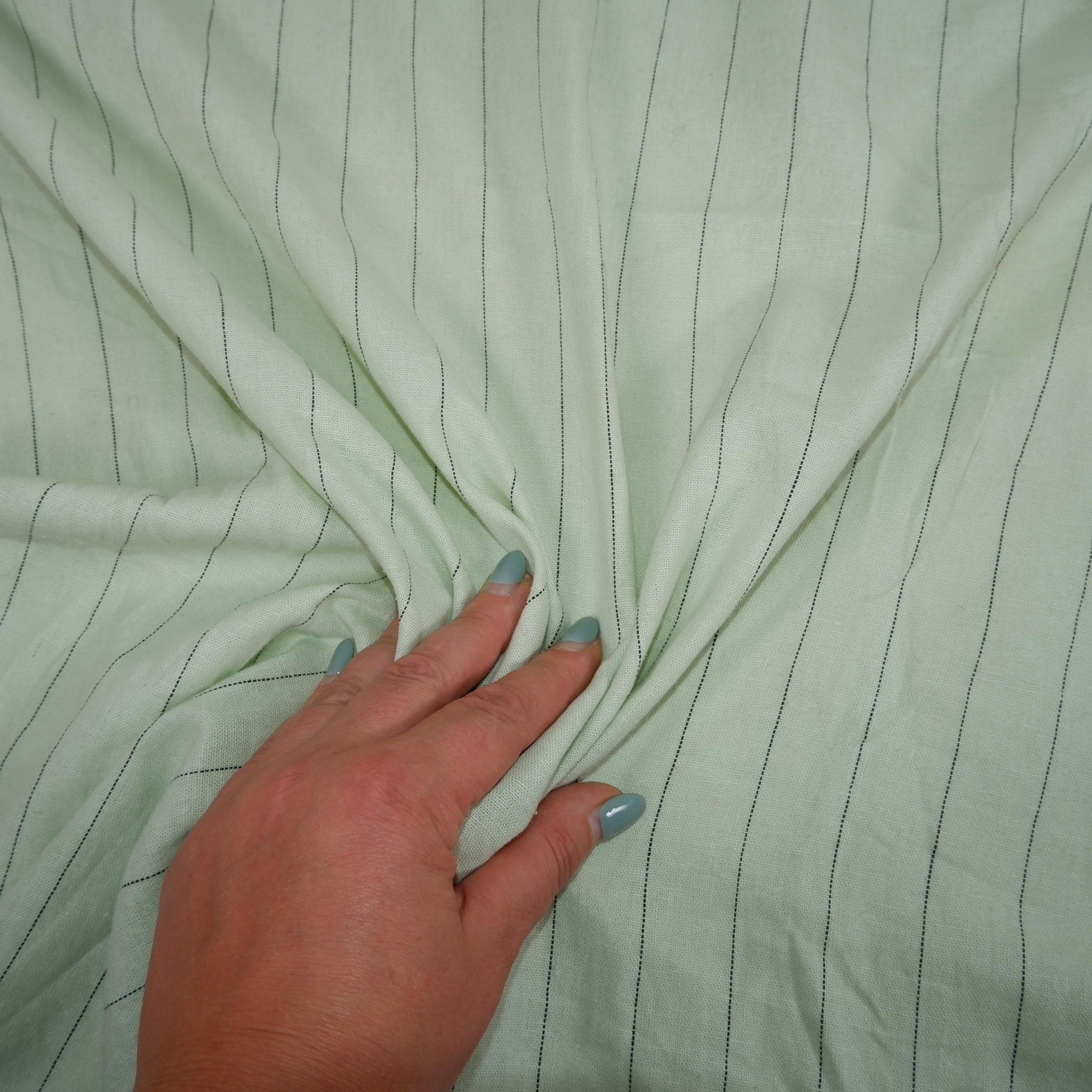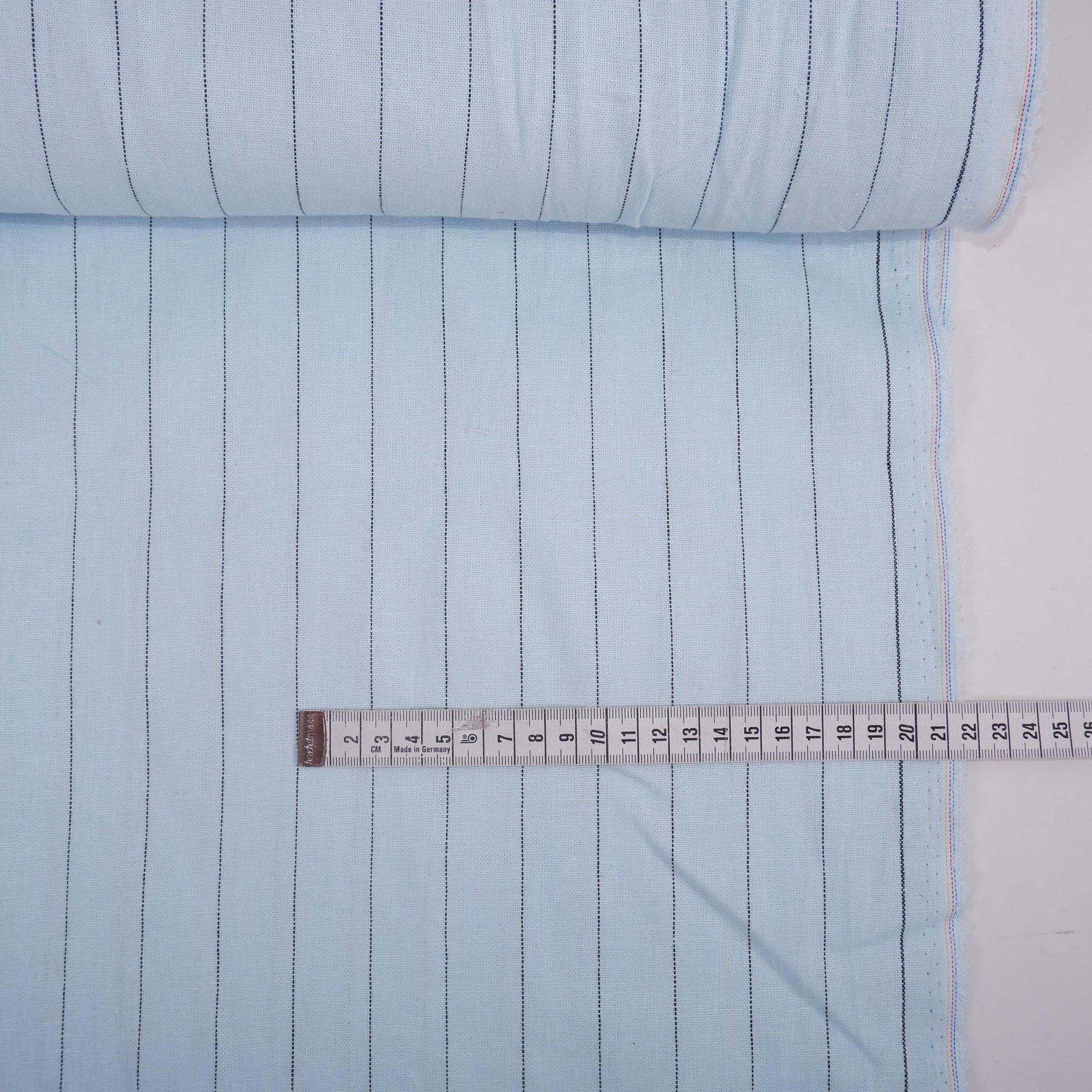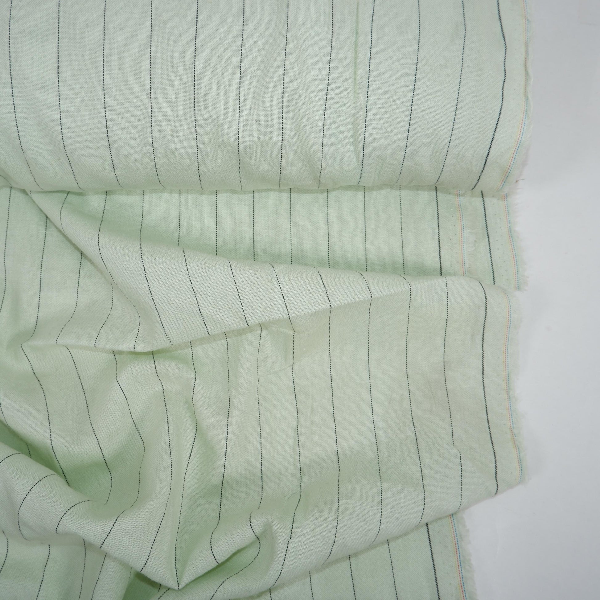 This is a linen stripe fabric in a vintage colorway of the pale pink (or pale green or pale blue) with a narrow black stripe. Beautiful, premium quality linen that would make beautiful garments or home decor items.