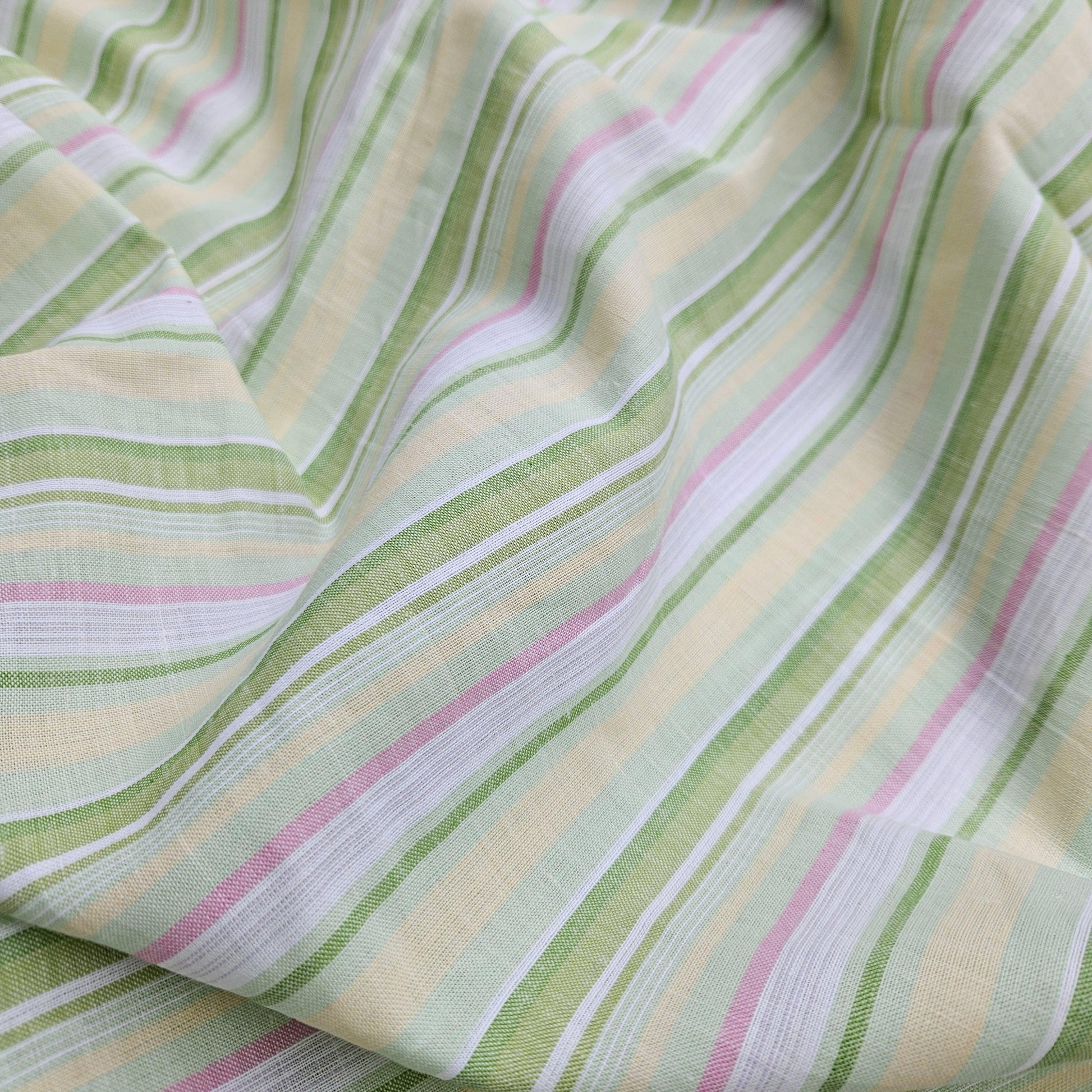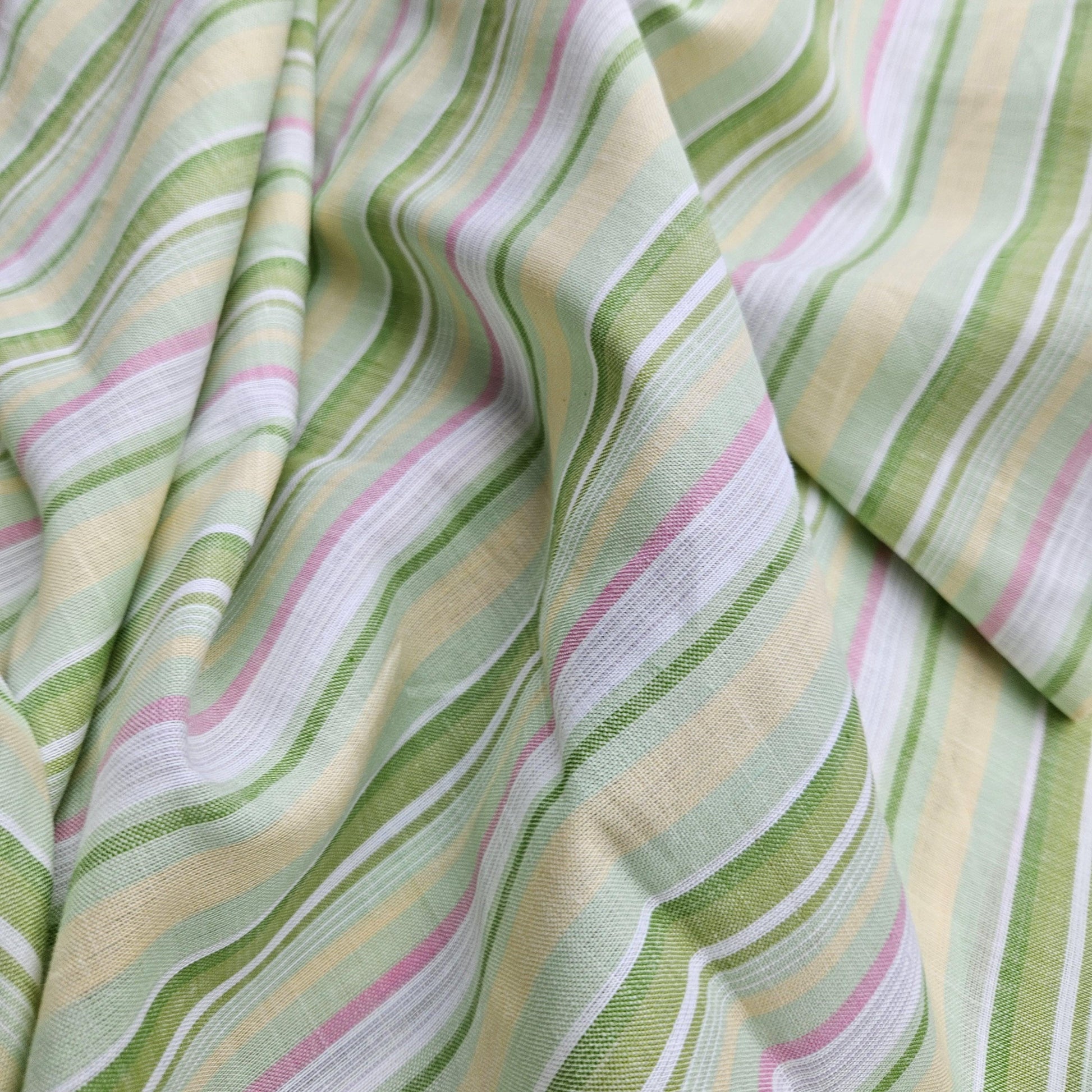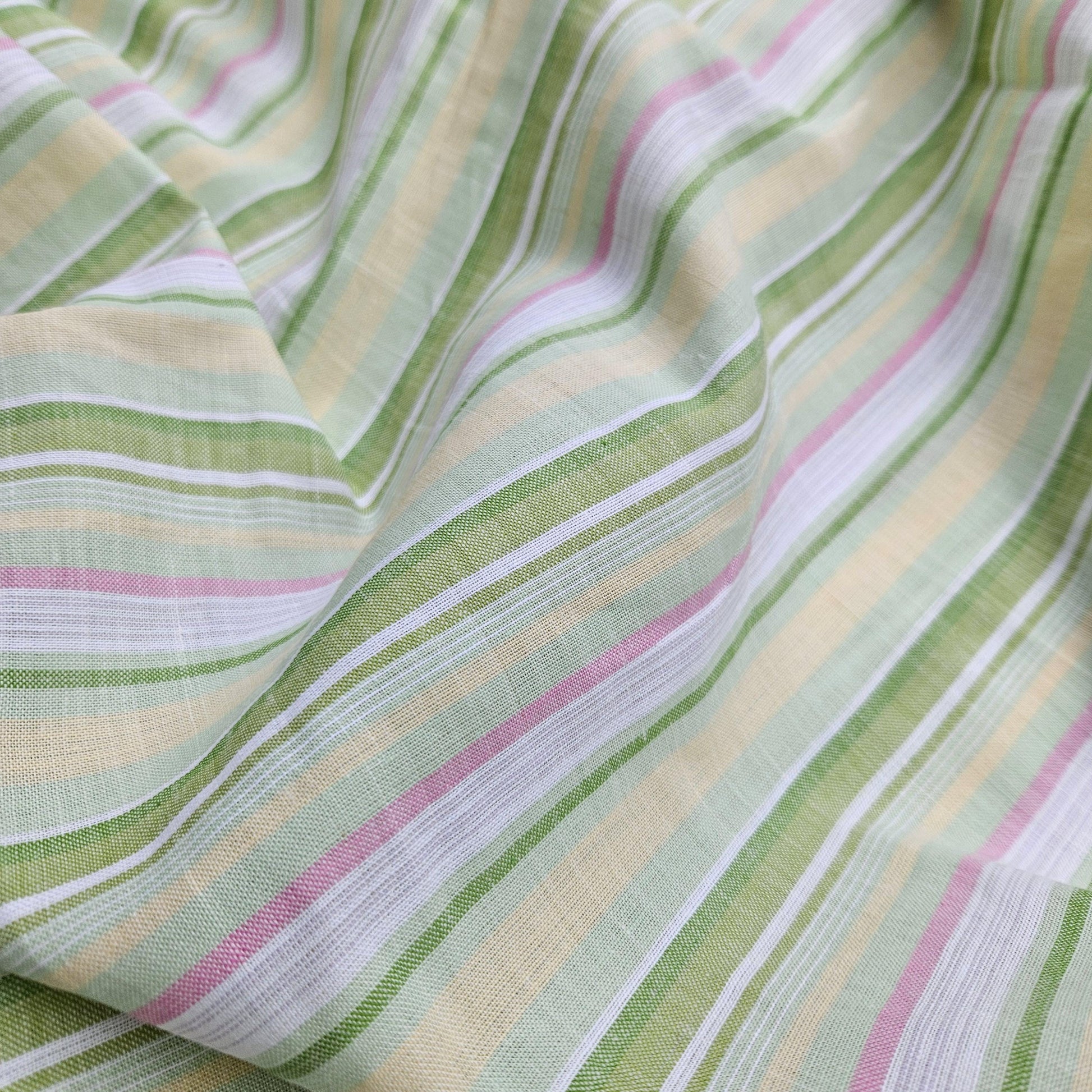 Premium Linen striped Fabric in pastel green white | Medium weight multicolor stripes Andalusia Stripe for clothing home textile