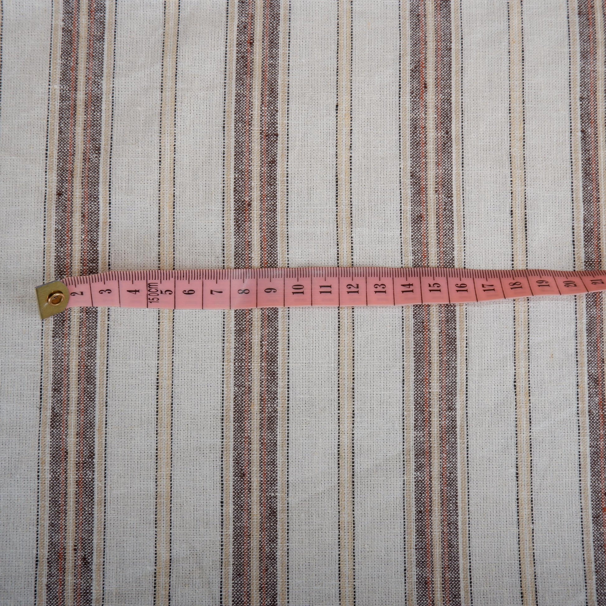 This is a linen different stripe fabric in a vintage colorway of the white paired with a navy blue and petrol and red. Beautiful, premium quality linen that would make beautiful garments or home decor items.