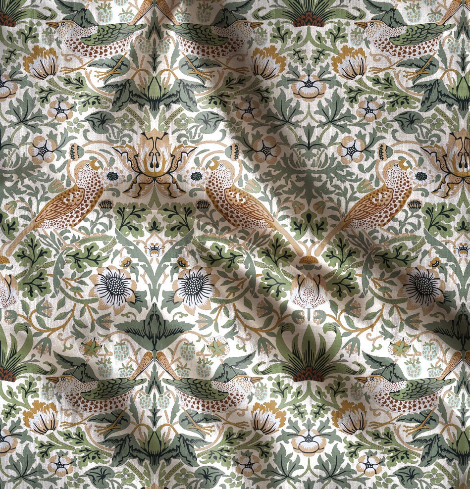 William Morris Strawberry thief 100% LINEN Art and Crafts Fabric , William Morris 200gsm flax linen fabric Strawberry Willow