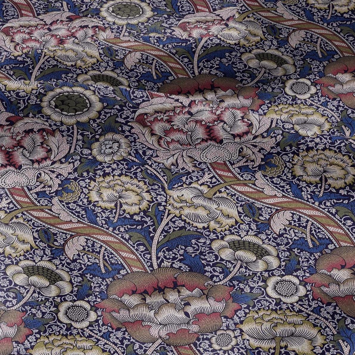 William Morris Wandle navy blue print on 100% LINEN - Victorian Art crafts linen Fabric - botanical Historical upholstery home textile